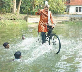(குளத்துத் தண்ணீரில் சைக்கிள் ஓட்டி மேஜிக்)